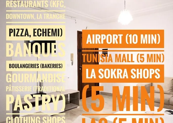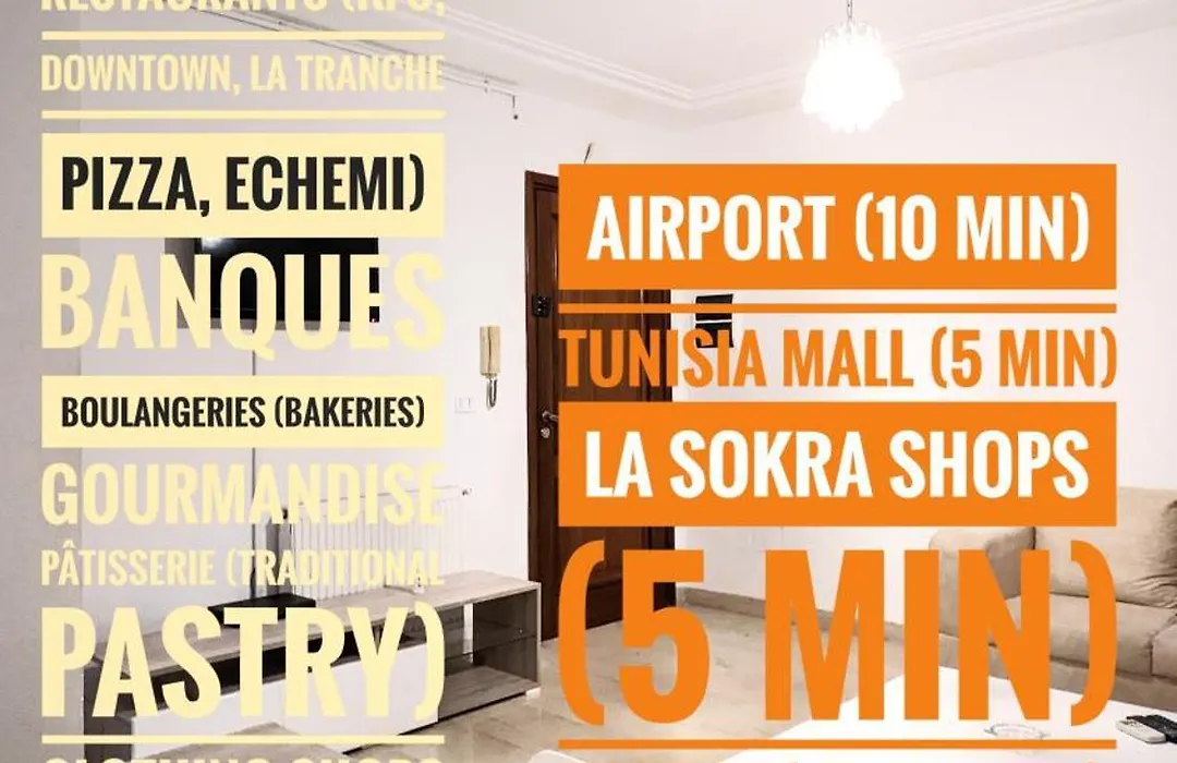 דירת Sunny Apartment Aouina Centre מציעה מטבח מיני וכמו כן גם חדרים עם מרפסת, טלוויזיה עם מסך שטוח וערוצי לוויין ובקרת אקלים. הנכס נמצא במרחק של 6 ק"מ מקתדרלת סן לואי, בזמן שThe Roman Theatre of Carthage זה כ-7 ק"מ משם.